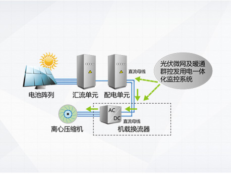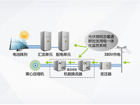 光伏发电系统不发电,主机向电网取电运行,机组相当于常规高效变频离心机。