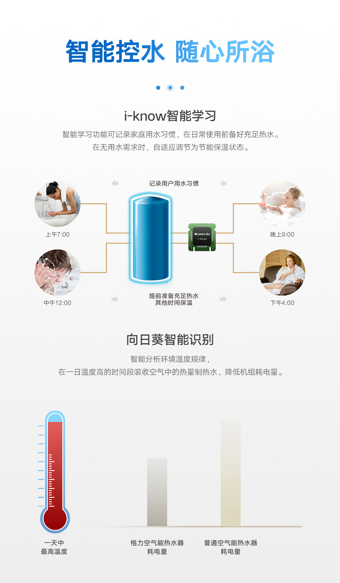 新型环保冷媒,绿色节能更高效,内置增容、向日葵、i-know等个性化功能;给您的沐浴带来多样化体验